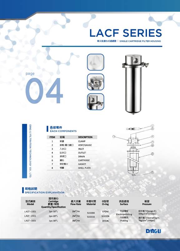 LACF過濾器是頂部採用一體成型加工製成,採用上進上出,可以直接連接到管道上,安裝極其方便。