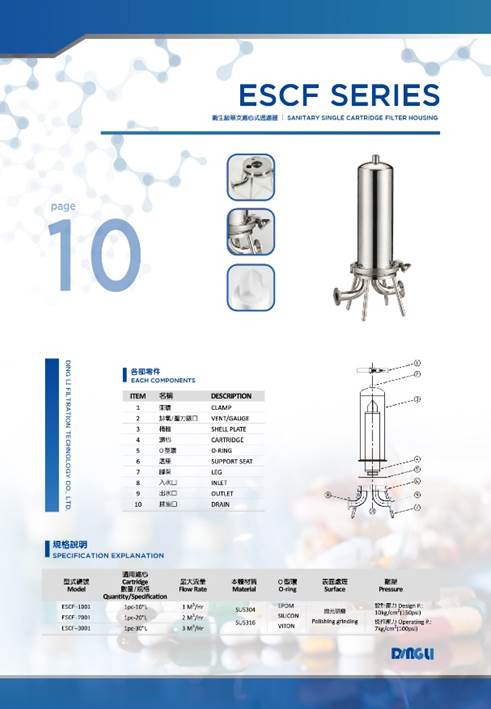 ESCF衛生級液體過濾器(單支裝濾芯)系列是一款小流量的高端衛生級過濾器。